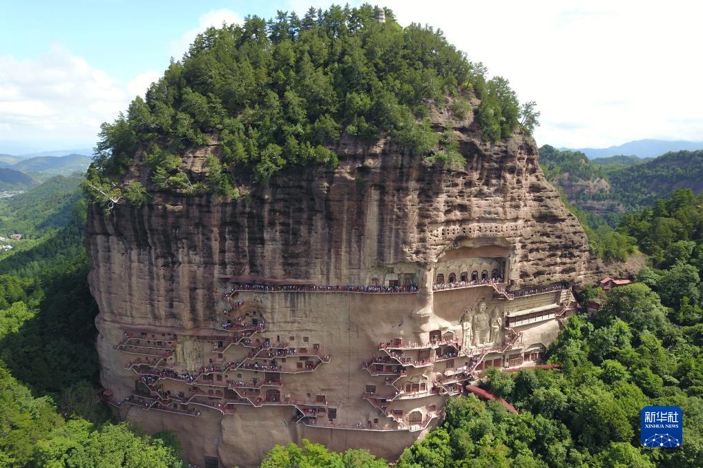 這是7月29日拍攝的麥積山石窟(無(wú)人機照片)。