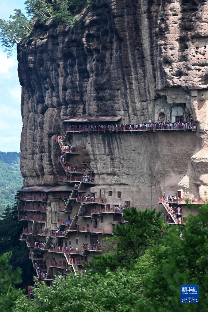 7月29日,游客在麥積山石窟參觀(guān)游覽。