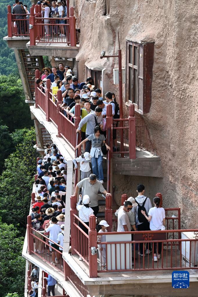 7月30日,游客在麥積山石窟參觀(guān)游覽。