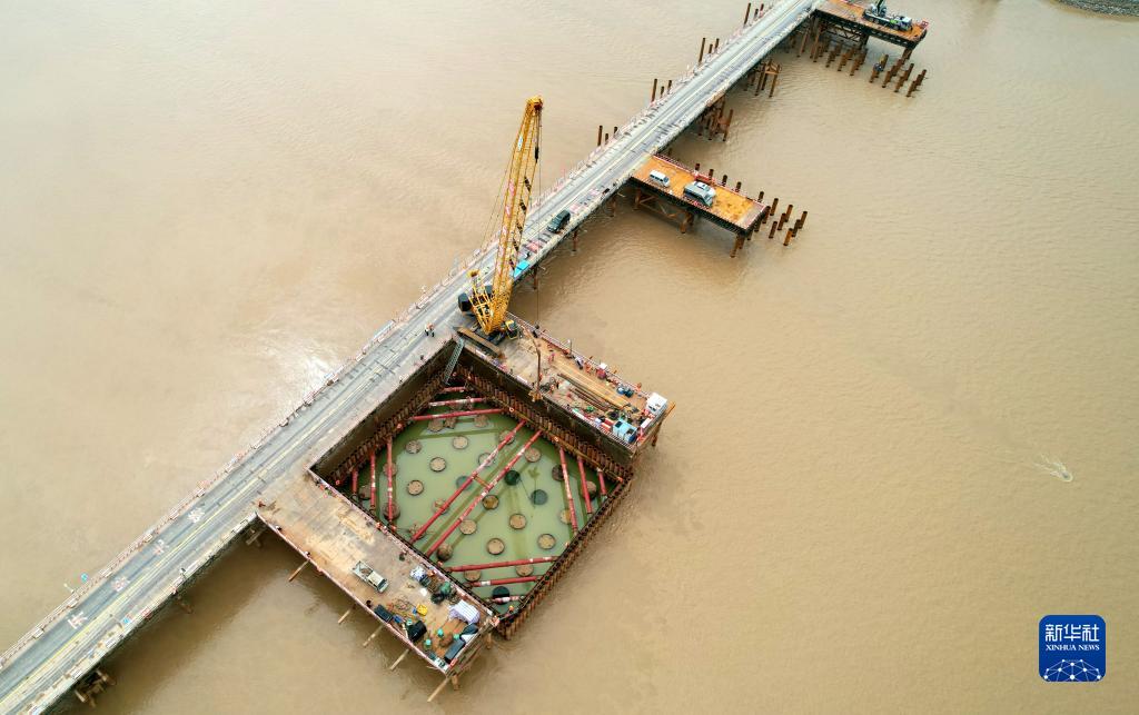 7月31日拍攝的雄商高鐵黃河特大橋主橋施工現場(chǎng)(無(wú)人機照片)。