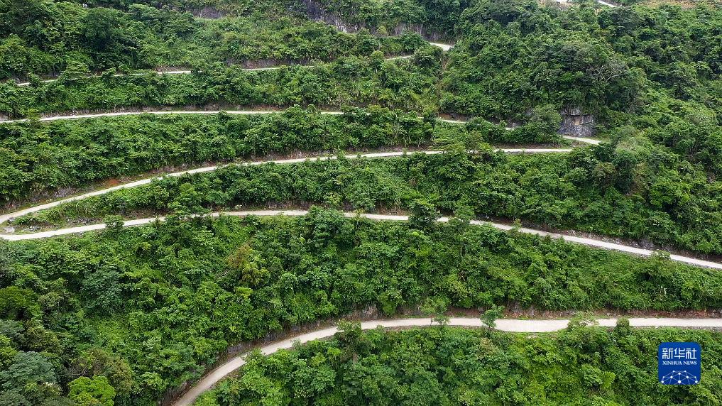 這是廣西那坡縣百省鄉那孟村各酬屯通往百南鄉的“龍拐路”,一里十彎(7月31日攝,無(wú)人機照片)。