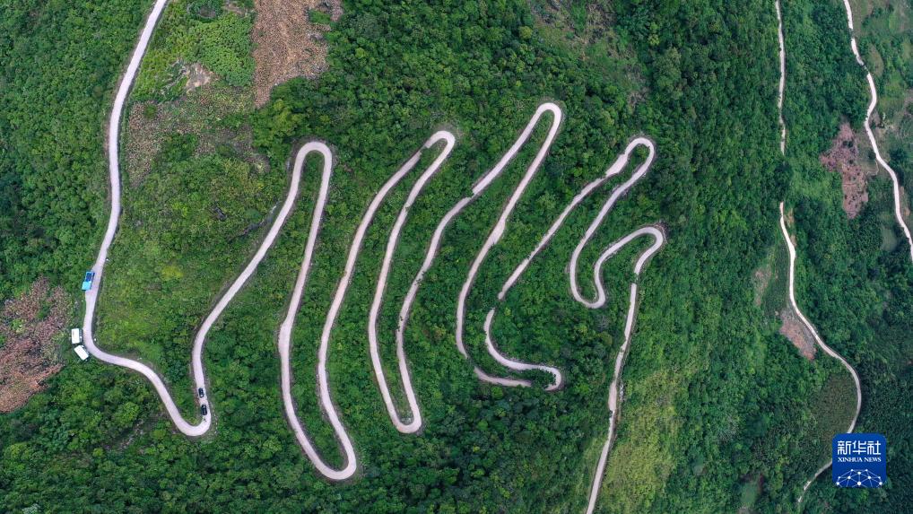 這是廣西那坡縣百省鄉那孟村各酬屯通往百南鄉的“龍拐路”,一里十彎(7月31日攝,無(wú)人機照片)。