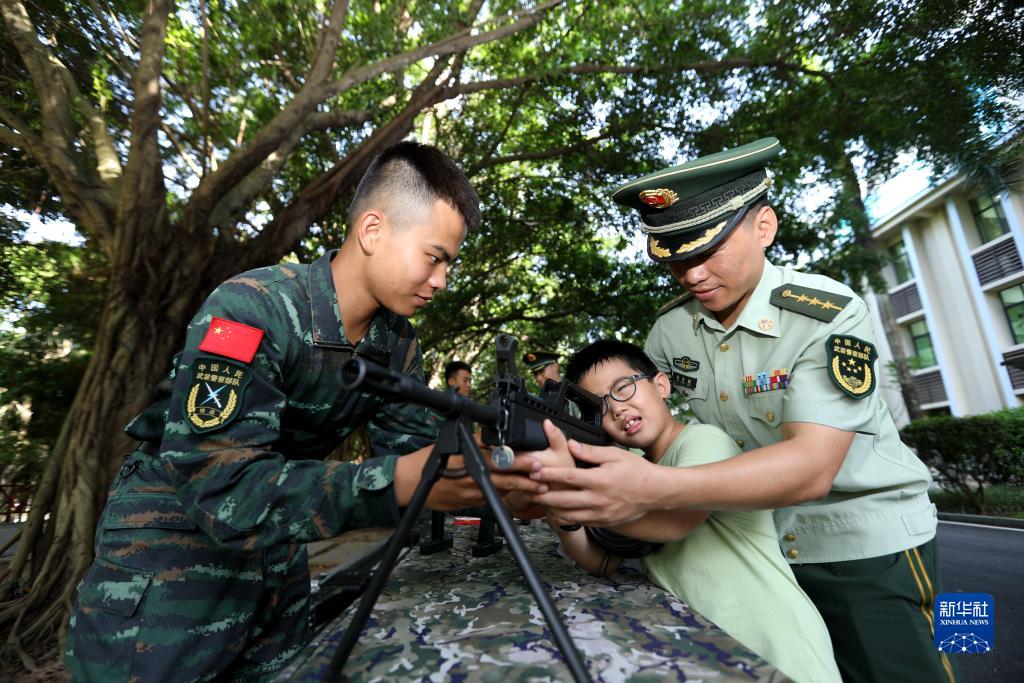 武警海南總隊三亞支隊開(kāi)展“軍嫂萌娃進(jìn)軍營(yíng)”主題活動(dòng),邀請百余名軍屬走進(jìn)營(yíng)區“零距離”體驗(7月30日攝)。