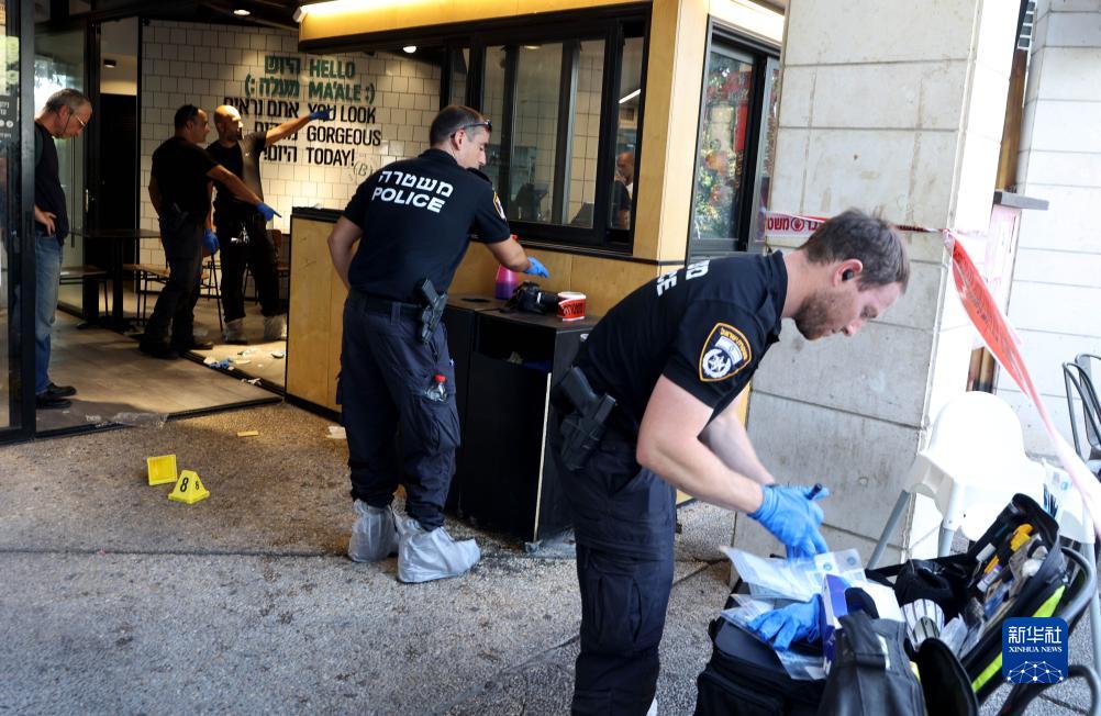 8月1日,在約旦河西岸猶太人定居點(diǎn)馬阿勒阿杜明,以色列警察在襲擊事件現場(chǎng)附近工作。
