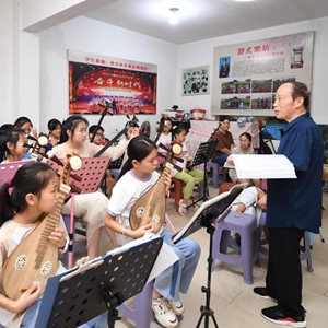 2015年,李舒尤回到家鄉枧頭洲村,發(fā)現村里的部分留守兒童因父母外出務(wù)工疏于管教十分頑皮,安全、生活、學(xué)習狀況都很令人擔憂(yōu)?!笆遣皇强梢岳梦业奶亻L(cháng),用音樂(lè )感化他們?”李舒尤想。自此,李舒尤在村里開(kāi)起了樂(lè )器公益課堂——“舒尤樂(lè )坊”,利用周末和寒暑假免費教授孩子們各類(lèi)樂(lè )器。為了吸引學(xué)生,他自費給鎮上的小學(xué)捐贈了40把二胡。8年間,公益課堂慢慢壯大,今年暑期,共有90多名學(xué)生在舒尤樂(lè )坊學(xué)習。