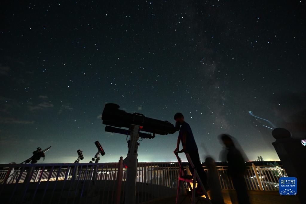 天文愛(ài)好者在哈巴湖天文臺觀(guān)看星空(8月13日攝)。