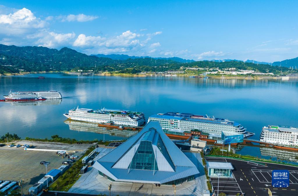 8月13日在三峽大壩上游湖北省宜昌市秭歸縣拍攝的新建旅游港換乘中心(無(wú)人機照片)。