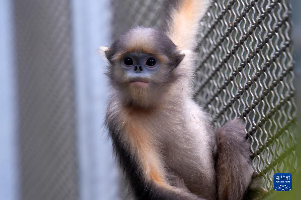 這是8月14日在梵凈山野生動(dòng)物救護中心拍攝的黔金絲猴。