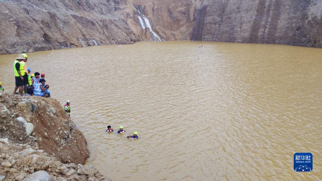 8月14日,救援人員在緬甸克欽邦帕甘鎮發(fā)生坍塌的玉石礦區搜救幸存者。