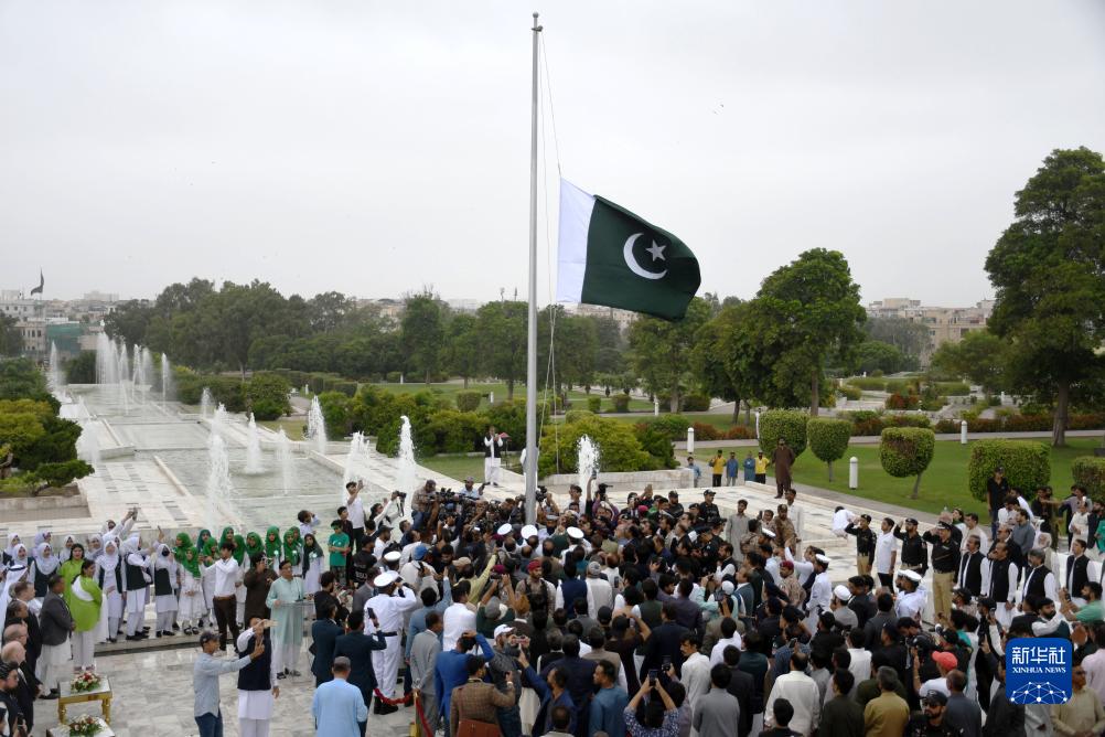 8月14日,在巴基斯坦卡拉奇,人們在國父穆罕默德·阿里·真納的陵墓旁舉行升旗儀式,慶祝獨立76周年。