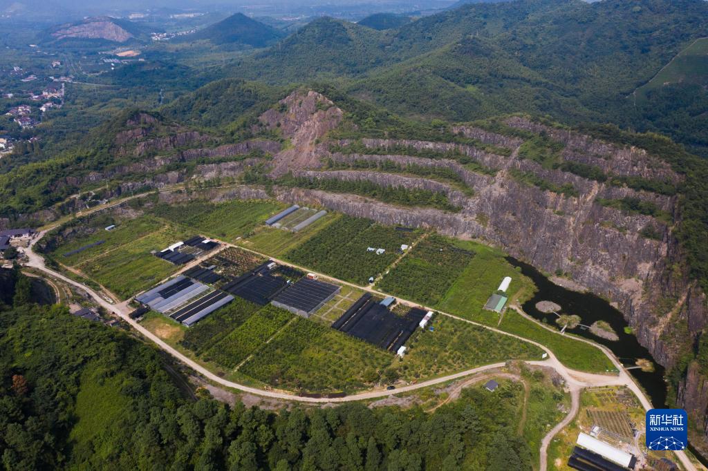 浙江省湖州市吳興區東林鎮三合村一處廢棄礦山經(jīng)過(guò)生態(tài)修復后成為花卉種植基地(8月14日攝,無(wú)人機照片)。