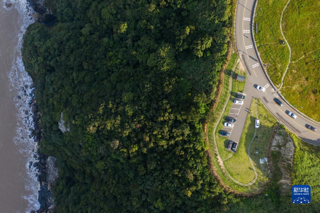空中俯瞰臨海而建的舟山普陀區螺塘線(xiàn)生態(tài)公路(8月6日攝,無(wú)人機照片)。螺塘線(xiàn)以“生態(tài)交通”為原則打造,將沿途的漁家村落、茶田、海灘、山坡、民宿等山海風(fēng)光串連起來(lái),移步換景,路景相依。