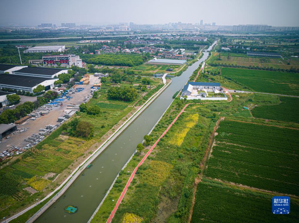 寧波市江北區西大河景色(8月11日攝,無(wú)人機照片)。近年來(lái),寧波市江北區通過(guò)堤岸整治、河道清淤、建立微循環(huán)系統等方式,提高了西大河的水體自?xún)裟芰退鷳B(tài)環(huán)境。