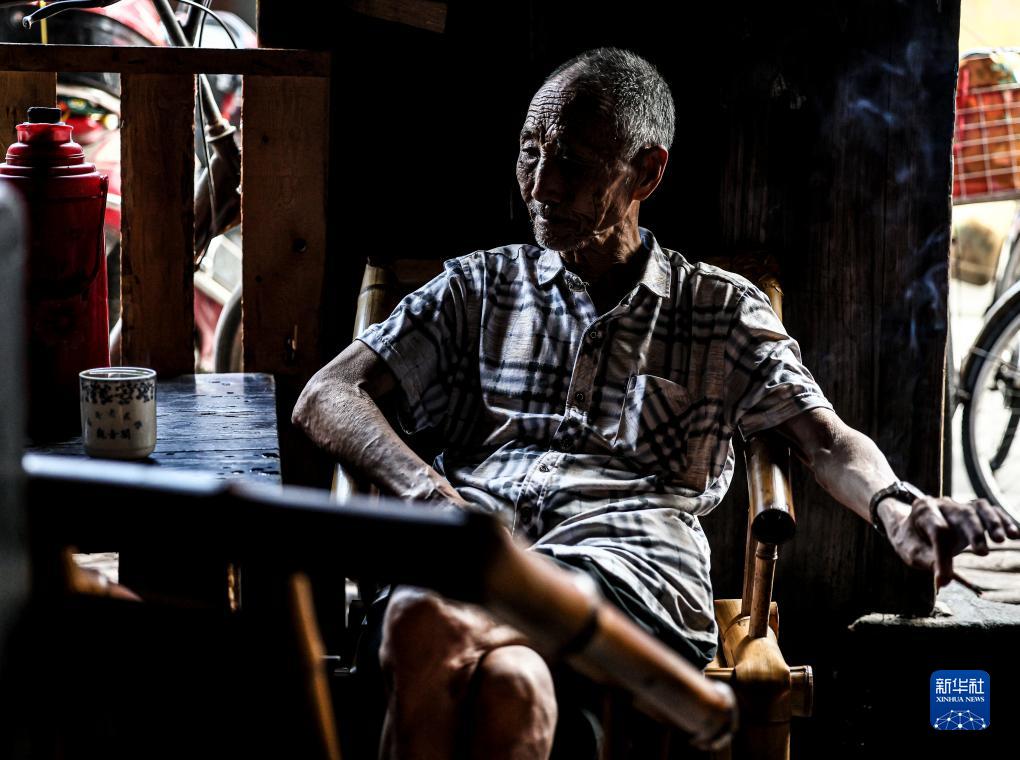 一位喝茶休閑的老人。鎮上的老人都喜歡到觀(guān)音閣老茶館喝茶休閑(8月7日攝)。