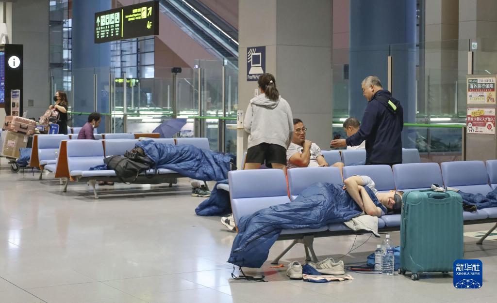 8月15日,受惡劣天氣影響,乘客滯留在日本大阪關(guān)西國際機場(chǎng)。