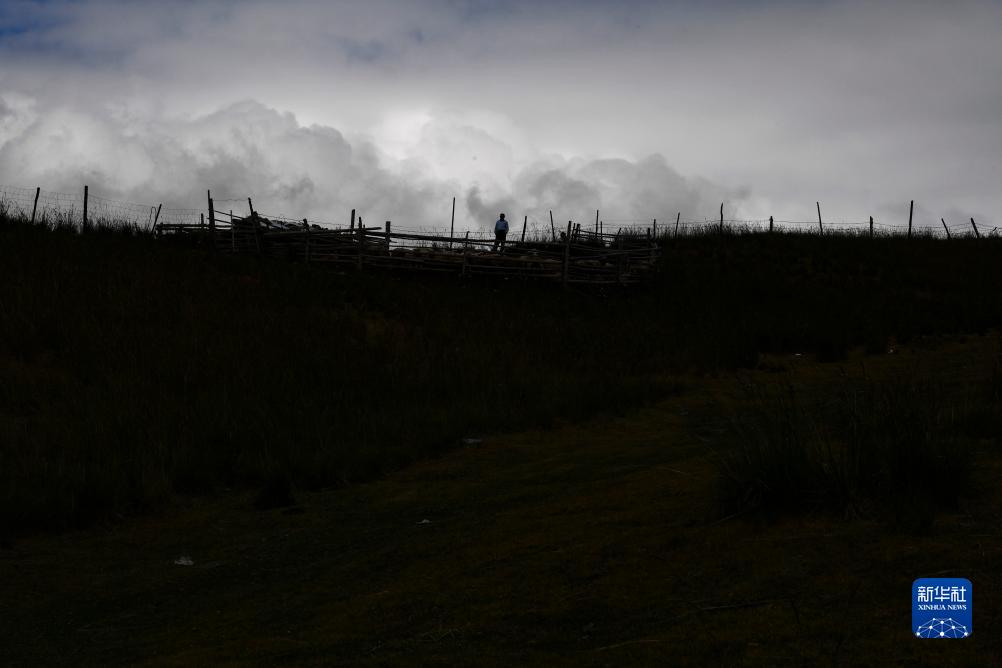 牧民在索爾巴斯陶牧場(chǎng)上清點(diǎn)羊群(8月13日攝)。
