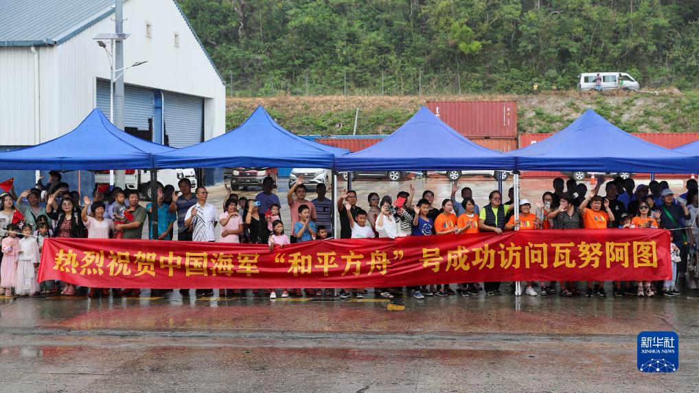 8月15日,人們在瓦努阿圖維拉港為中國海軍“和平方舟”號醫院船送行。