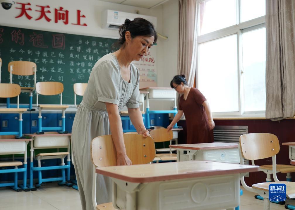 8月14日,北京市門(mén)頭溝區妙峰山民族學(xué)校的工作人員在布置教室。