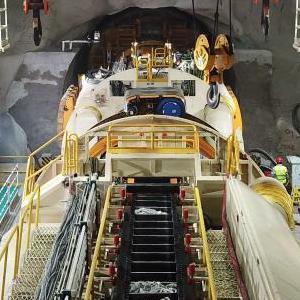 8月15日,在湖南平江抽水蓄能電站引水隧洞建設現場(chǎng),工作人員查看“天岳號”掘進(jìn)機作業(yè)情況。
