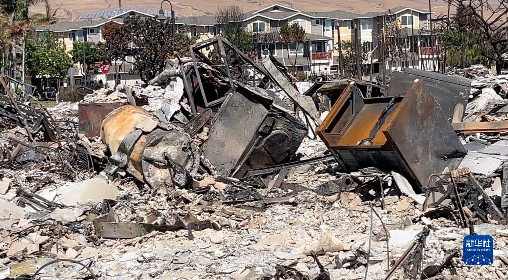 這是8月14日在美國夏威夷州毛伊島拉海納拍攝的野火燒毀的殘骸。