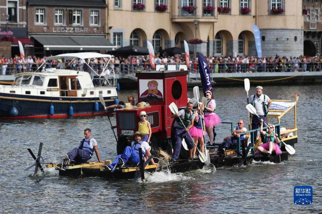 當日,“浴缸劃船節”在比利時(shí)迪南舉行。該活動(dòng)始于1982年,已成為比利時(shí)熱鬧的夏季節慶活動(dòng)之一。今年的“浴缸劃船節”主題為“默茲河上的農場(chǎng)”,參加者圍繞浴缸打造稀奇古怪的船只,比拼設計創(chuàng )意及現場(chǎng)表演。