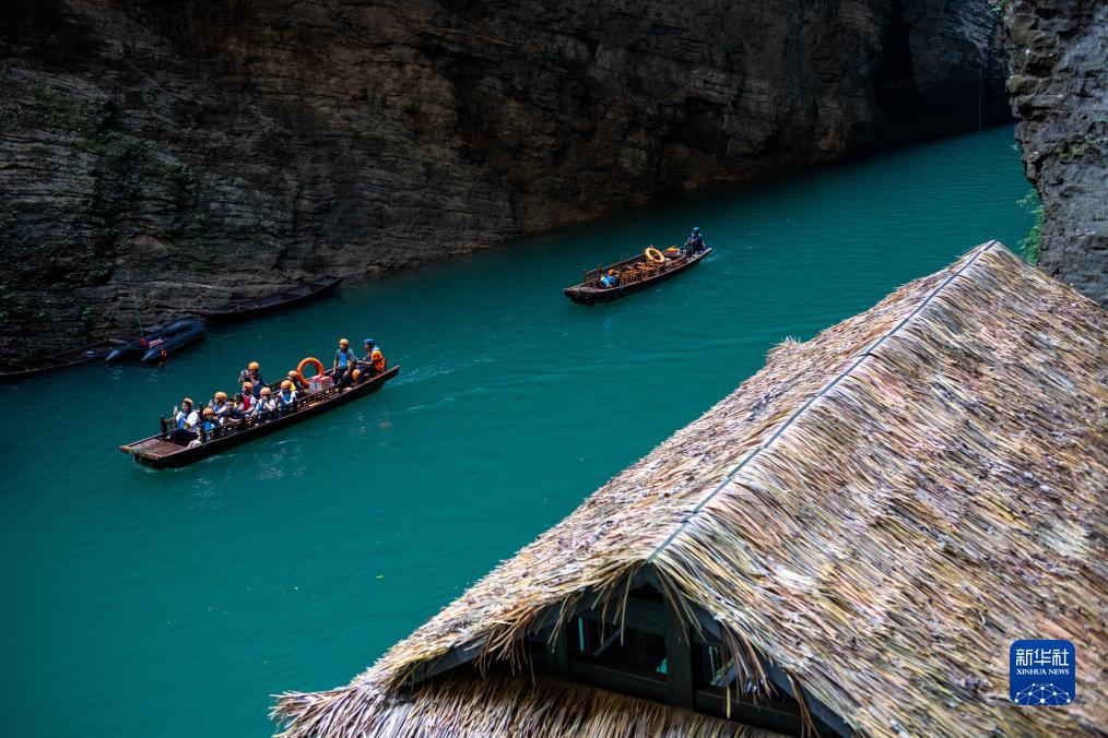 湖北省恩施土家族苗族自治州鶴峰縣森林覆蓋率高,空氣清新,氣候宜人。位于該縣容美鎮的屏山峽谷,全長(cháng)約18公里,峰巒與河谷高差達千米,最窄處僅五尺,形成罕見(jiàn)的峽谷和地縫特色風(fēng)光,碧水、輕舟與絕壁、森林相映成趣,每年吸引眾多海內外游客前來(lái)觀(guān)光。
