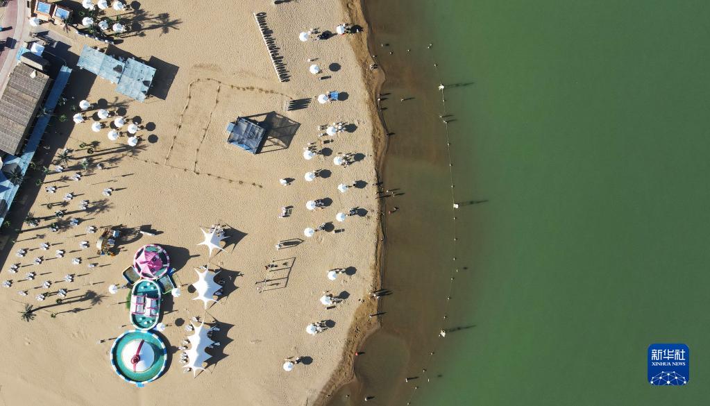 8月31日拍攝的新疆博斯騰湖大河口景區(無(wú)人機照片)。