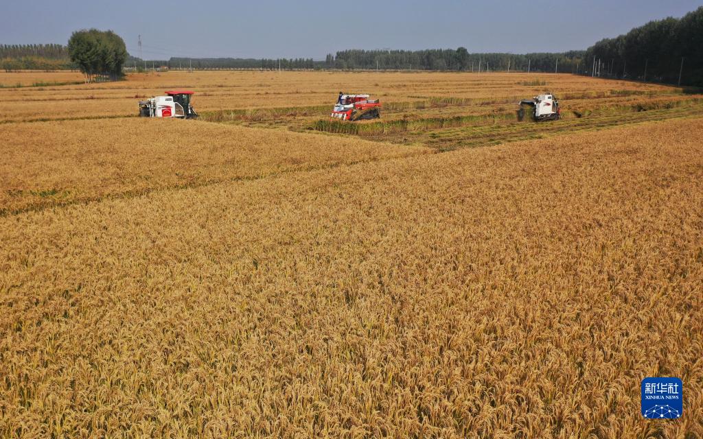 金秋時(shí)節,河北省唐山市的水稻迎來(lái)收獲季節,農民開(kāi)始搶抓農時(shí)適時(shí)收獲,確保顆粒歸倉。