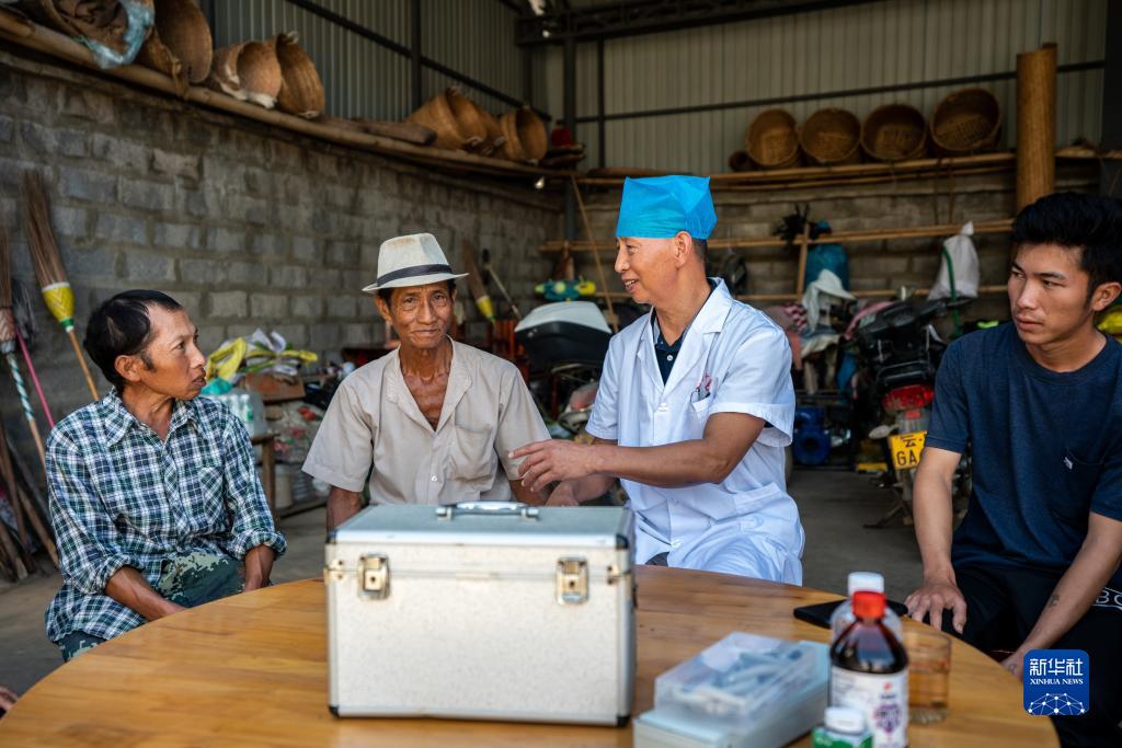 在瑞麗市畹町鎮混板村委會(huì )弄片村民小組,沈坤(右二)在村民家做家訪(fǎng)(10月28日攝)。