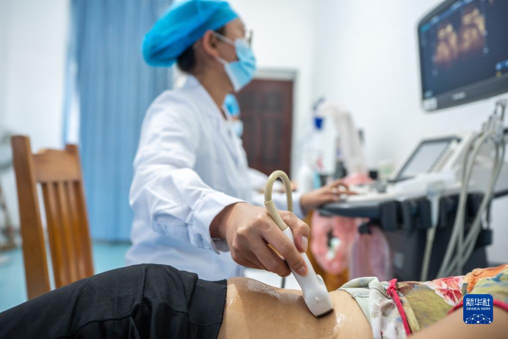 在畹町仁慈醫院,醫務(wù)人員給病人做B超檢查(10月29日攝)。