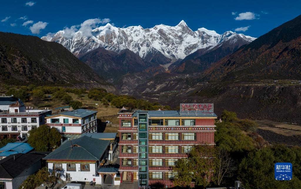 這是次仁頓珠和拉巴卓瑪開(kāi)辦的民宿(無(wú)人機照片,11月13日攝)。