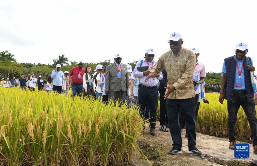 11月14日,參加中非農業(yè)合作論壇的嘉賓在海南省三亞市海棠灣水稻國家公園參觀(guān)。