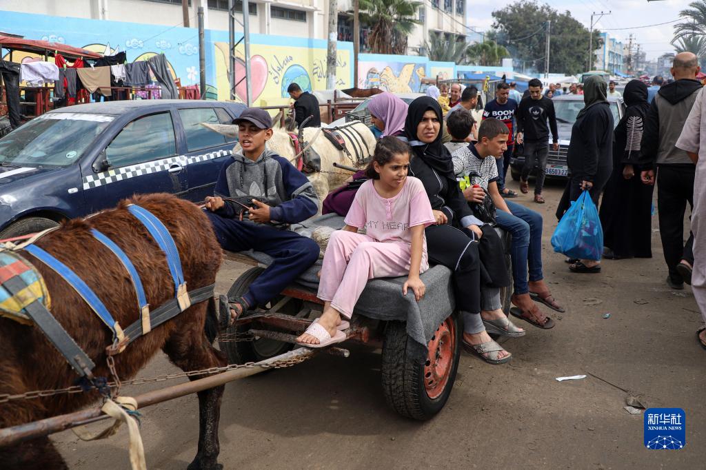 11月14日,在加沙地帶南部城市汗尤尼斯,人們乘驢車(chē)出行。