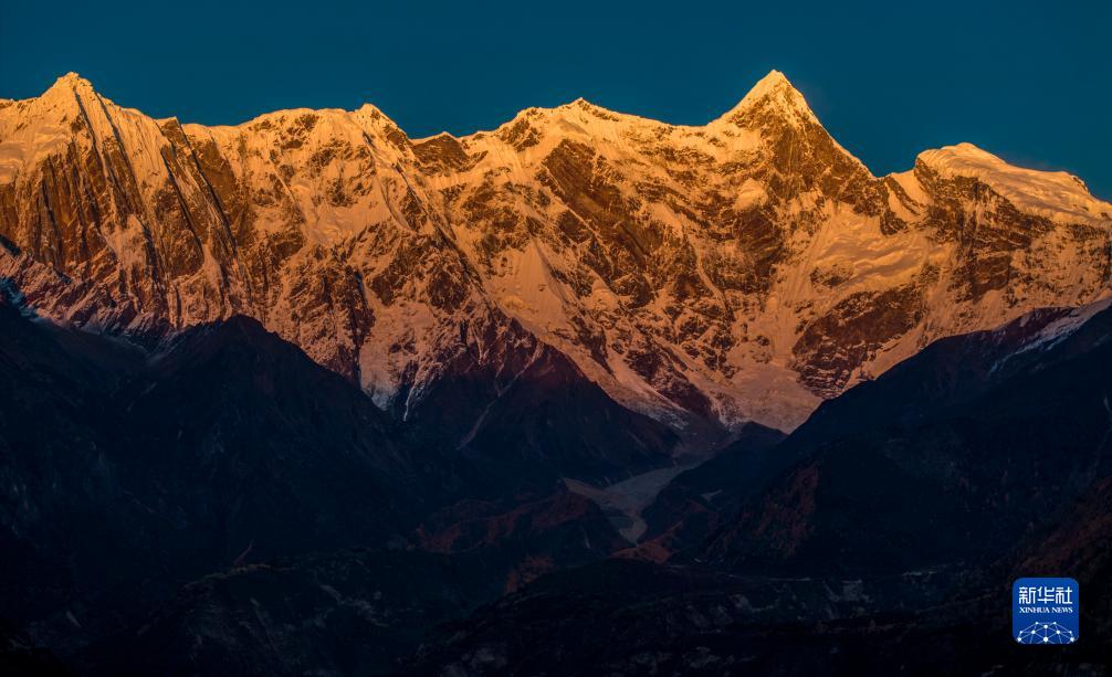 這是11月13日在索松村拍攝的日落時(shí)分的南迦巴瓦峰。