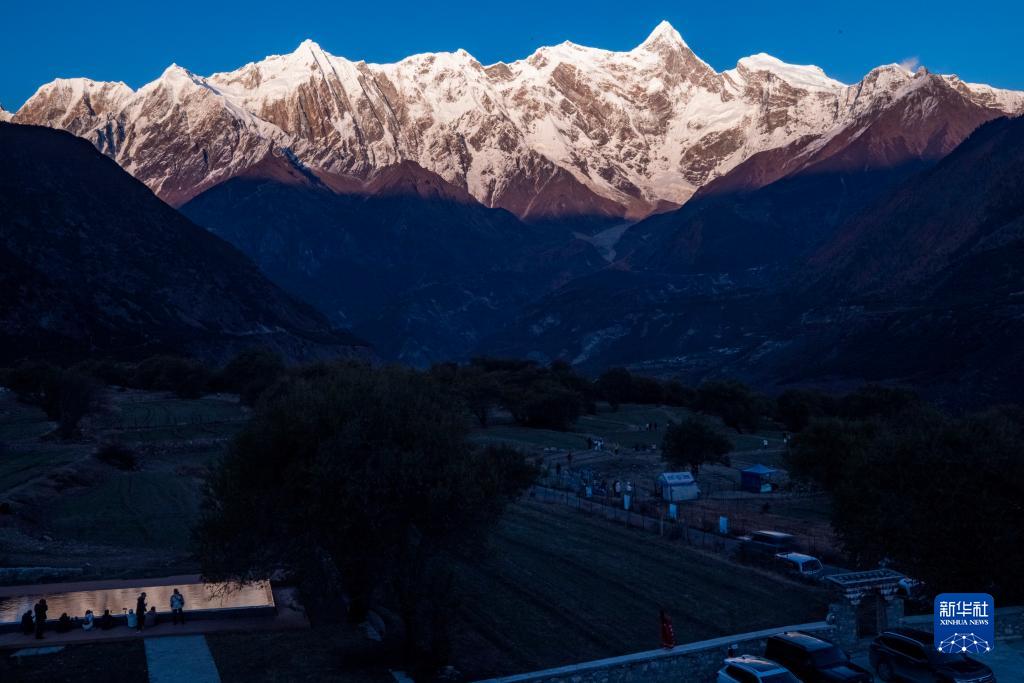 游客們在索松村拍攝日落時(shí)分的南迦巴瓦峰(11月13日攝)。