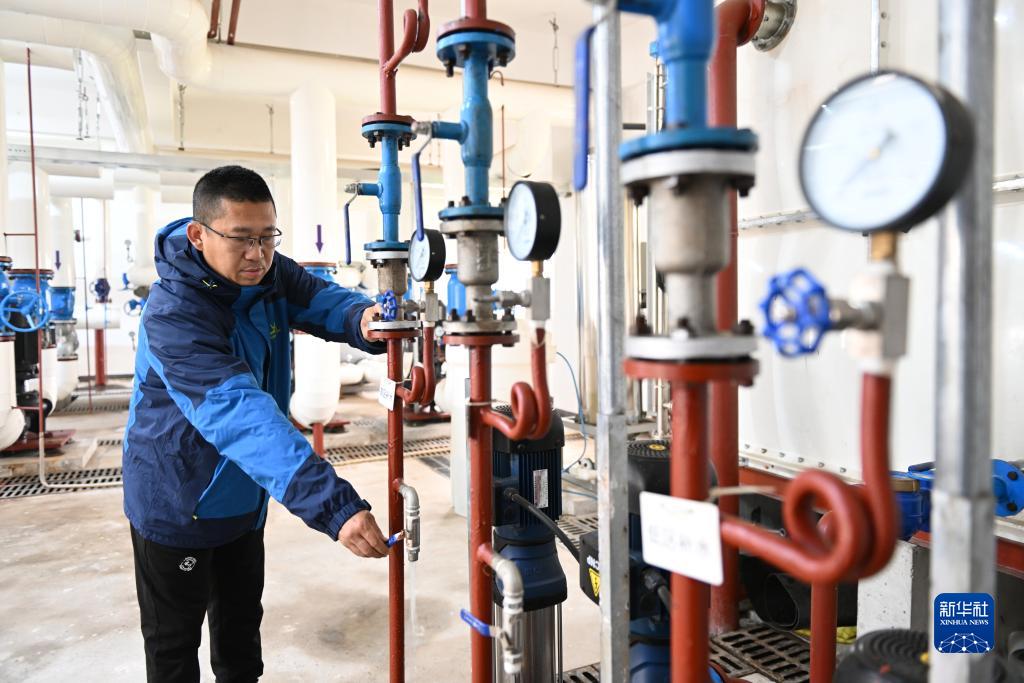 11月15日,唐山市熱力集團有限公司工作人員在唐山市路南區綠城南湖春曉五號熱力站內檢查供暖設備。