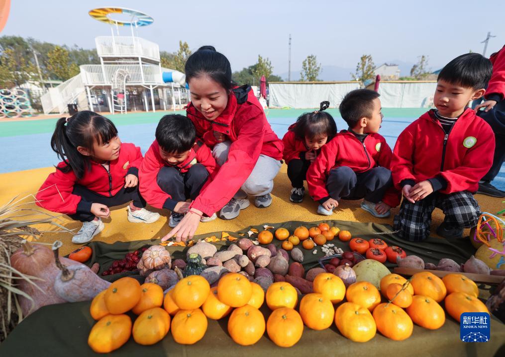 當日,浙江省湖州市長(cháng)興縣李家巷鎮中心幼兒園開(kāi)展“冬日校園 樂(lè )享豐收”校園豐收節主題活動(dòng)。孩子們在老師的帶領(lǐng)下參觀(guān)豐收節農作物展、手工藝品展,還參加挑擔子、運蘿卜、接力送玉米等趣味運動(dòng),學(xué)習知識、鍛煉身體,感受豐收帶來(lái)的喜悅。