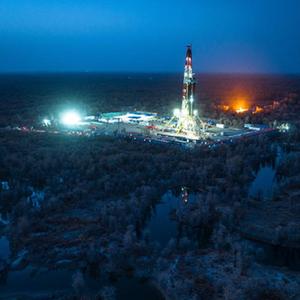 11月15日拍攝的中國石化“深地一號”躍進(jìn)3-3XC井(無(wú)人機照片)。