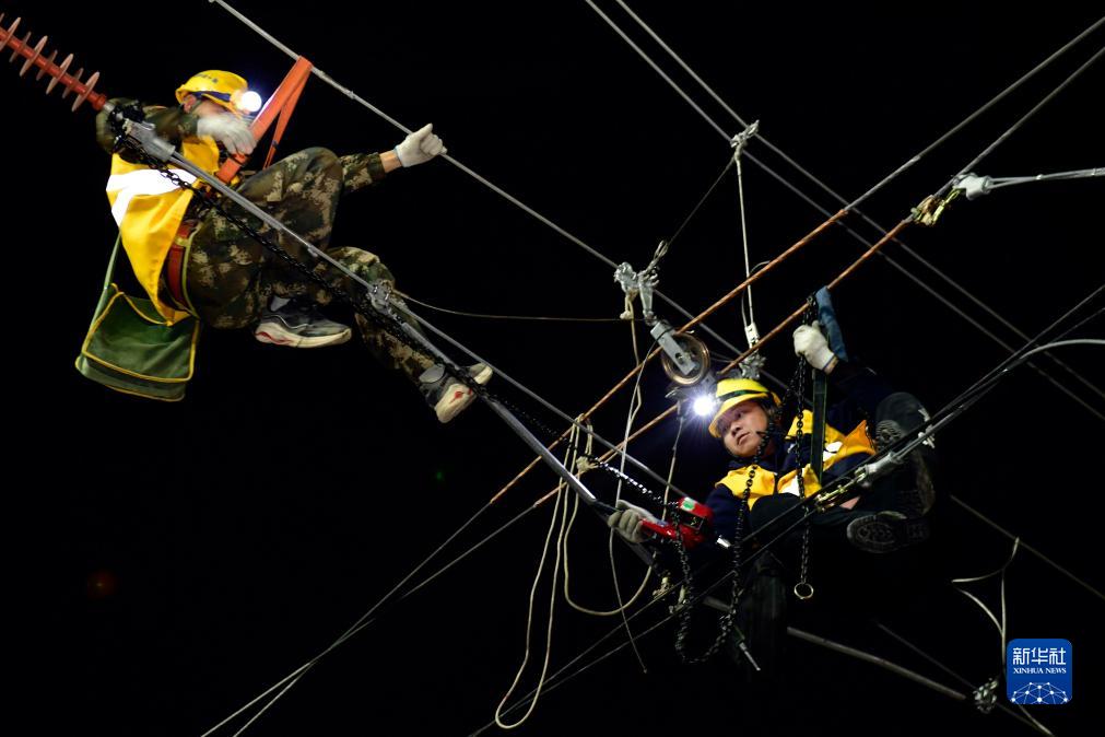11月15日夜間,在濟南火車(chē)站,中鐵十局的工作人員正在對濟鄭高鐵引入濟南站進(jìn)行站改作業(yè)。