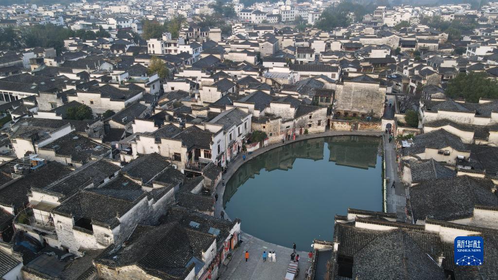 這是11月14日拍攝的黟縣宏村(無(wú)人機照片)。