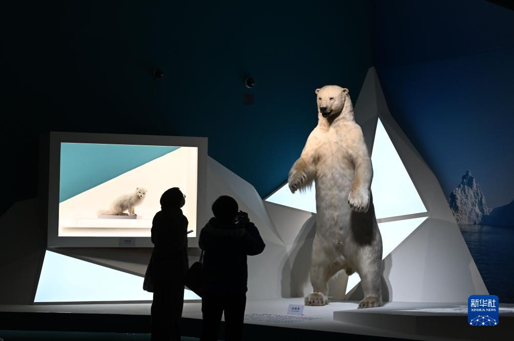 11月16日,觀(guān)眾在參觀(guān)北極熊標本。