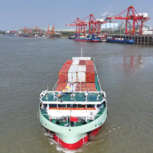 漢江首艘純電動(dòng)集裝箱示范船在武漢首航
