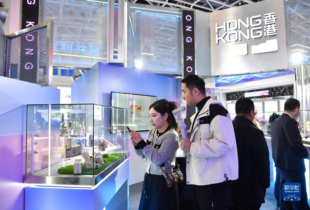 11月16日,觀(guān)眾在第七屆絲博會(huì )香港展位參觀(guān)。