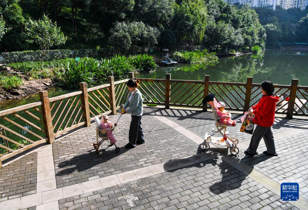 11月16日,在重慶市渝北區龍山街道龍華社區,居民在盤(pán)溪河岸邊散步、休閑。