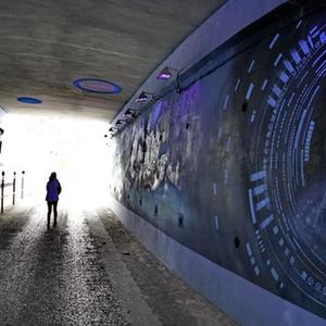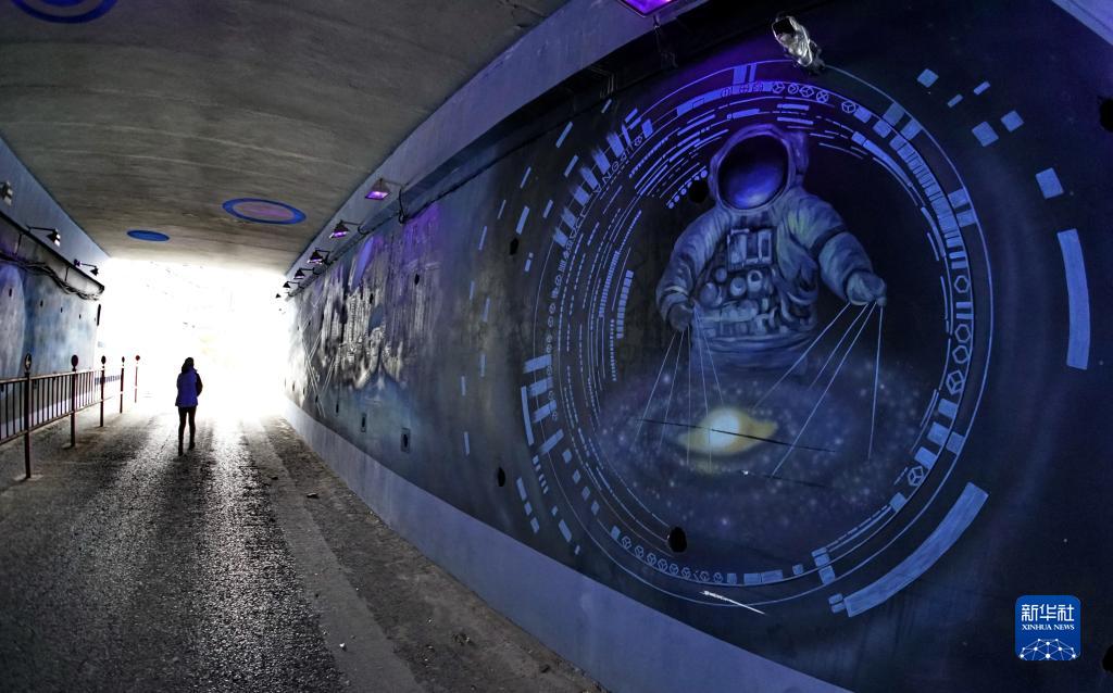 鐵路地下通道經(jīng)過(guò)安保數字化和環(huán)境改造后成為居民喜愛(ài)的“元宇宙時(shí)光隧道”(11月16日攝)。