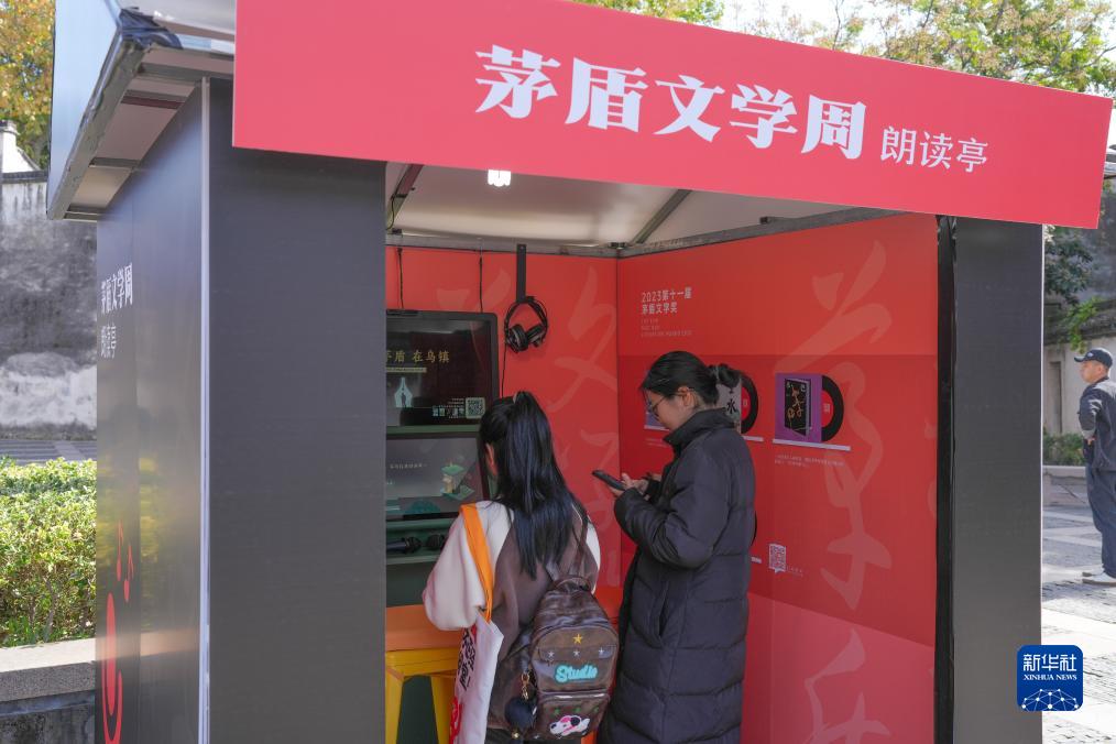 11月17日,人們在烏鎮景區茅盾文學(xué)周朗讀亭內體驗。