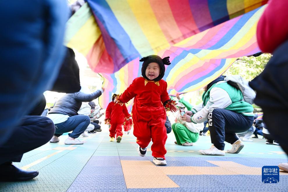 11月17日,幼兒在親子運動(dòng)會(huì )上游戲。