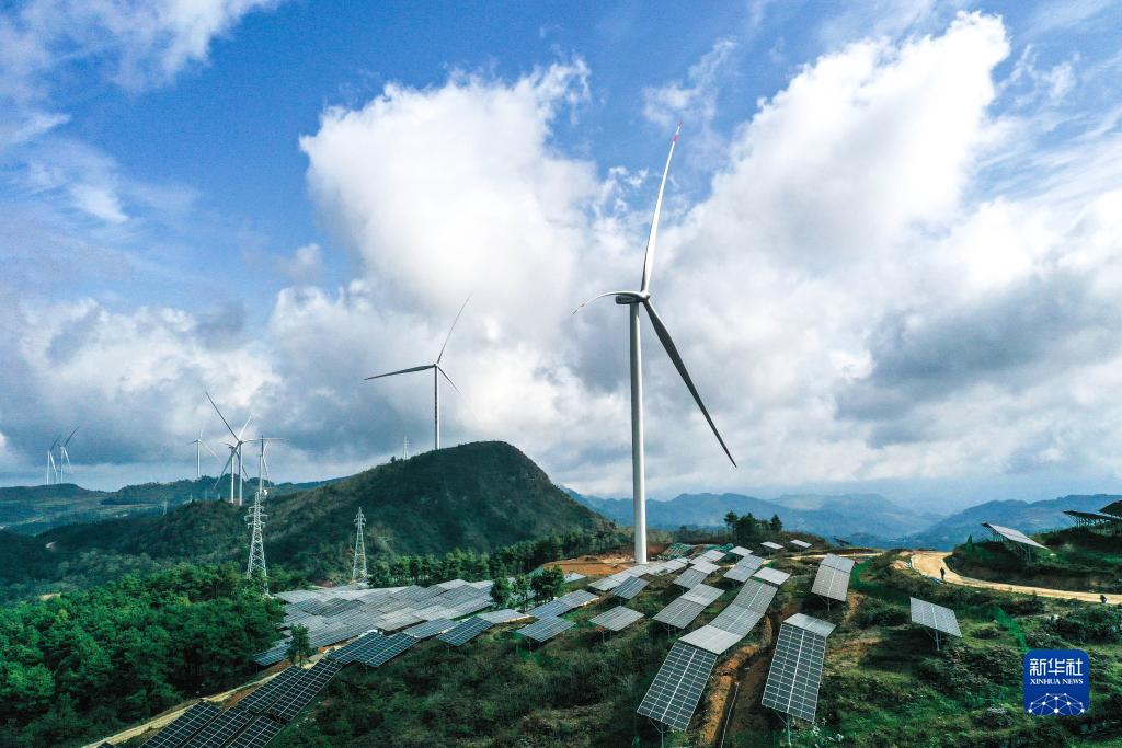 這是11月16日拍攝的貴州省石阡縣頂董坡風(fēng)電光伏項目(無(wú)人機照片)。
