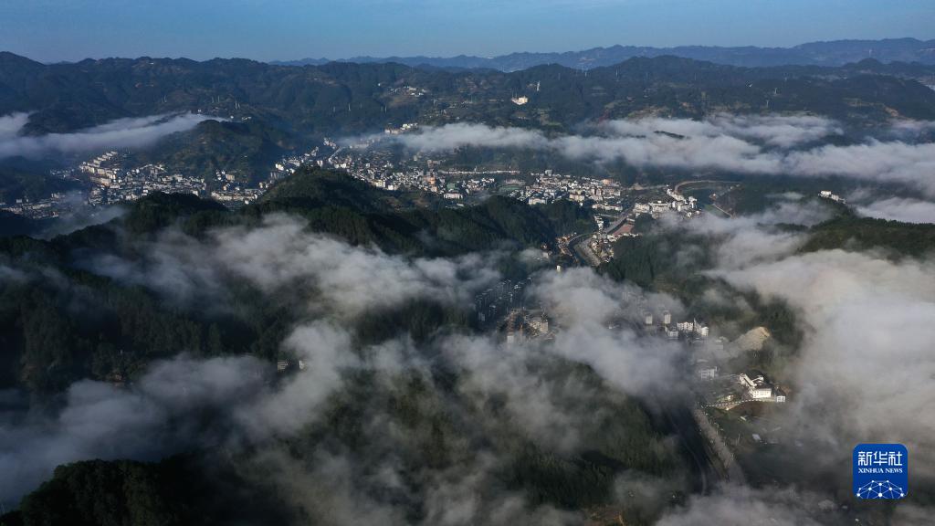 初冬時(shí)節,位于貴州省黔東南苗族侗族自治州雷山縣境內的雷公山國家森林公園,云霧繚繞,民居、梯田、公路、橋梁交相輝映,美不勝收,景色如畫(huà)。