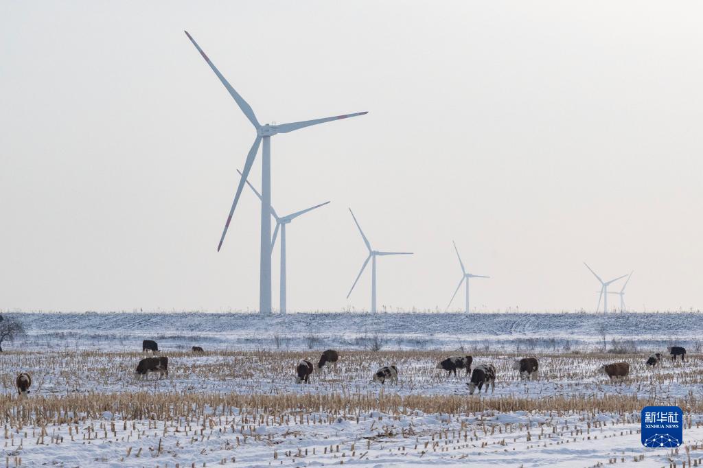 這是11月16日拍攝的位于鶴崗市綏濱縣的大唐綏濱新能源有限公司吉成風(fēng)電場(chǎng)的風(fēng)機。